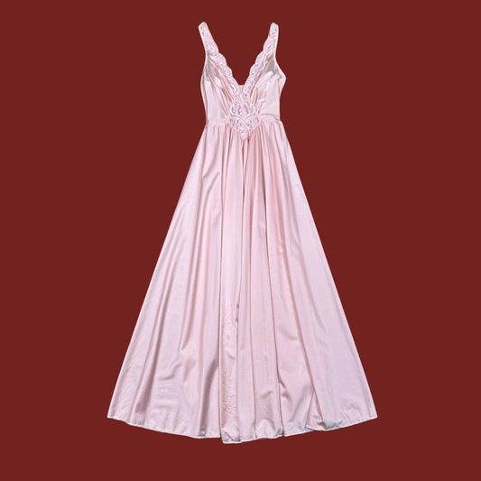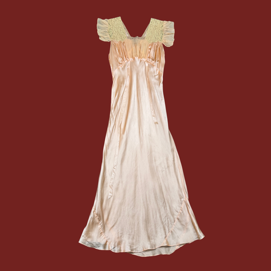 (M/L) 1930s Peach Ecru Lace Satin Bias Cut Dress