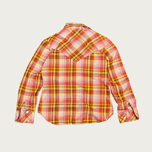(M) 70s Orange Plaid Western Shirt