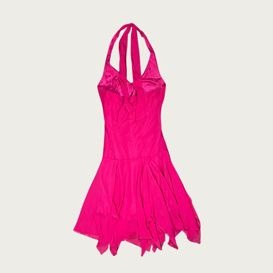 (M) Y2K Fuchsia Drop Waist Beaded Halter Dress