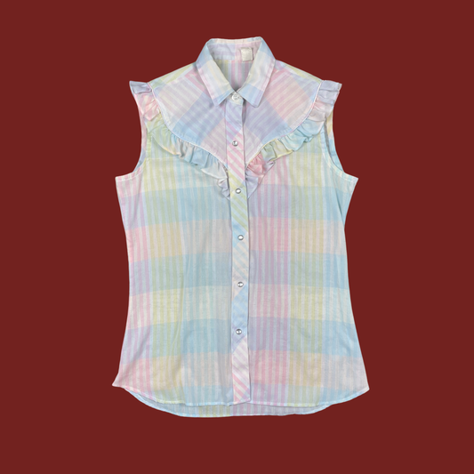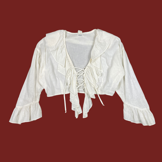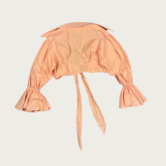 (S) 80s/90s Peach Cropped Tie Front Blouse