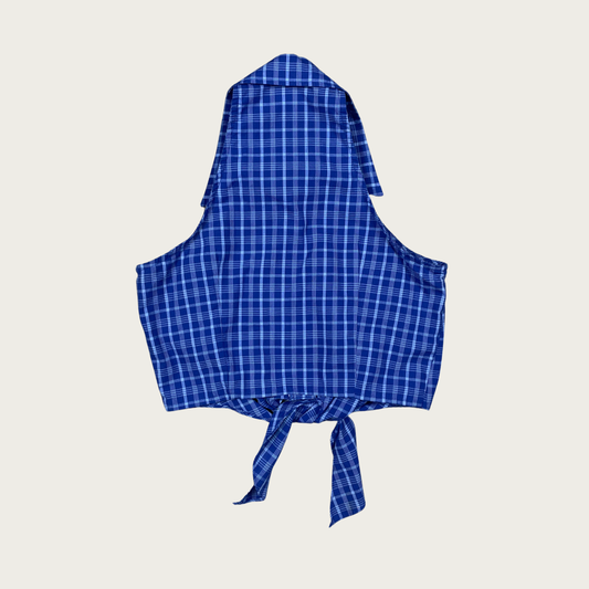 (M) 90s/Y2K Blue Plaid Cropped Tie Top
