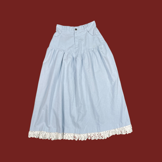 (26") 70s/80s Light Blue Eyelet Trim Midi Skirt