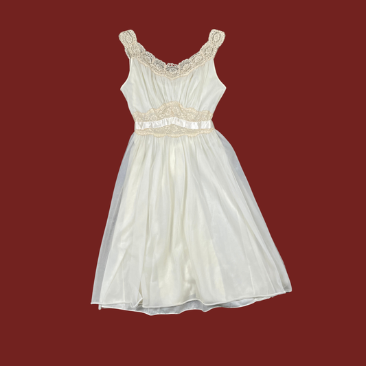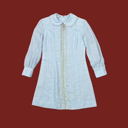(M) 60s/70s Light Blue Semi Sheer Collared Mini Dress