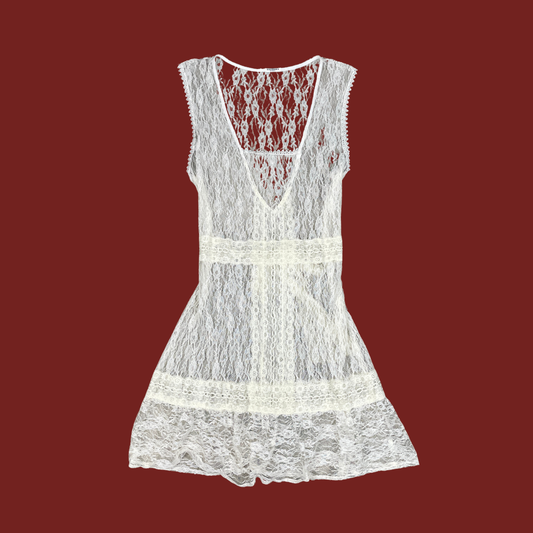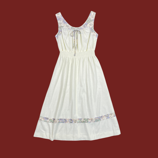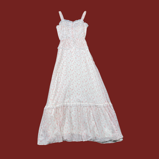 (XS) 60s/70s Pink and White Lace Trim Prairie Maxi Dress