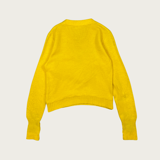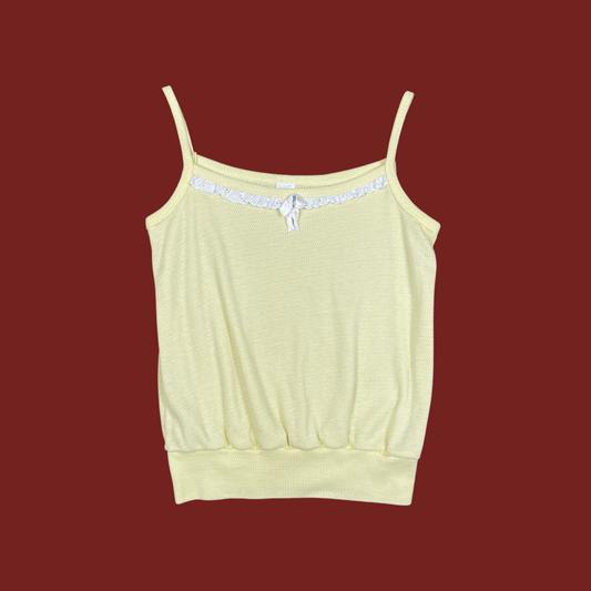 (S/M) 70s/80s Yellow Knit Eyelet Trim Tank Top