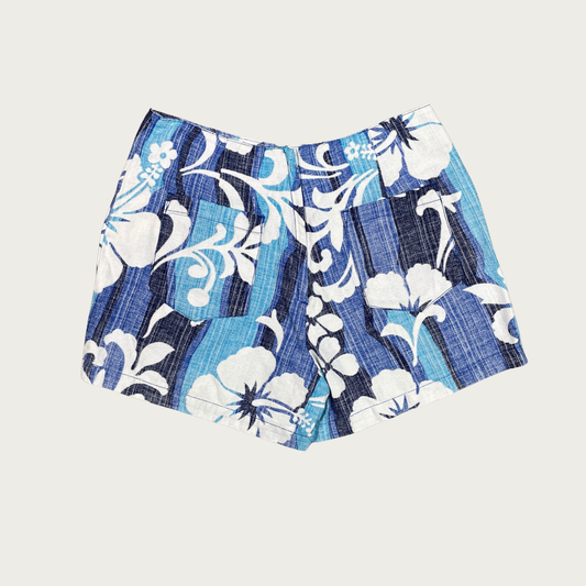 (25") 70s/80s Blue Hawaiian Print Mini Shorts