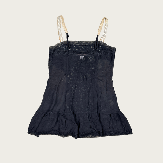 (XS/S) Sheer Black Ruffle Babydoll Slip Dress
