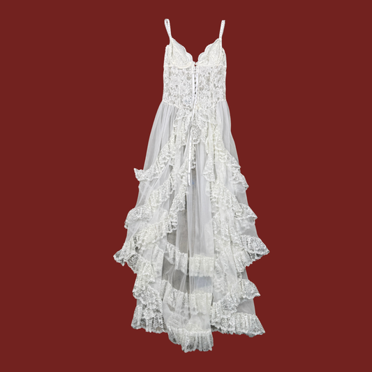 (M) 80s/90s Frederick's of Hollywood White Tiered Lace Corset Dress
