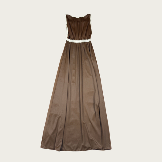 (S) 70s/80s Brown/Cream Lace Trim Nightgown