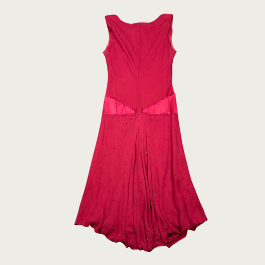 (S/M) 90s/Y2K Red Silk Beaded Midi Dress
