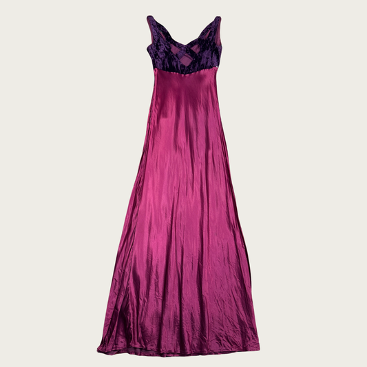 (S) 90s Plum/Magenta Velvet Satin Gown