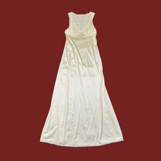 (S) 70s/80s Pastel Yellow Lace Trim Nightgown
