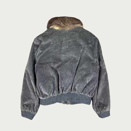 (L) 70s Fur Lined Corduroy Bomber Jacket