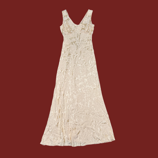 (M) 80s/90s Light Peach Jacquard Floral Maxi Dress
