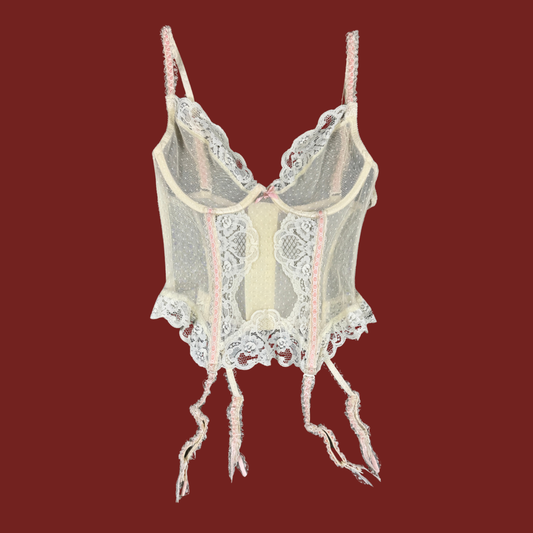 (S/M) 80s/90s Yellow/Pink Bustier Top