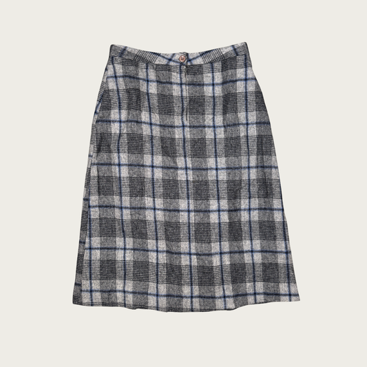 (28") Gray/Blue Plaid Wool Pleated Midi Skirt