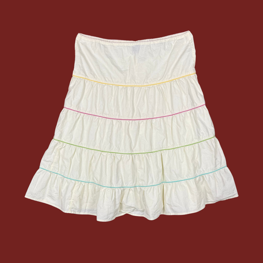 (OS) 90s/Y2K Cream Tiered Multicolor Stripe Midi Skirt