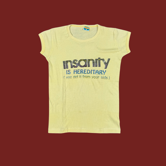 (S/M) 70s "Insanity Is Hereditary" Baby Tee