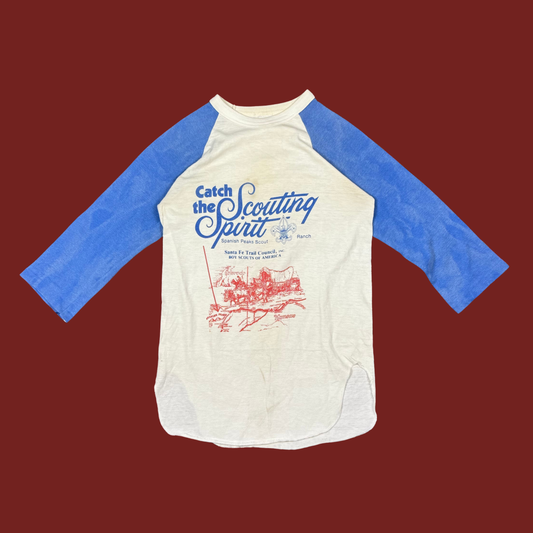(XS) 70s/80s Spanish Peaks Boy Scouts Raglan Baseball Tee