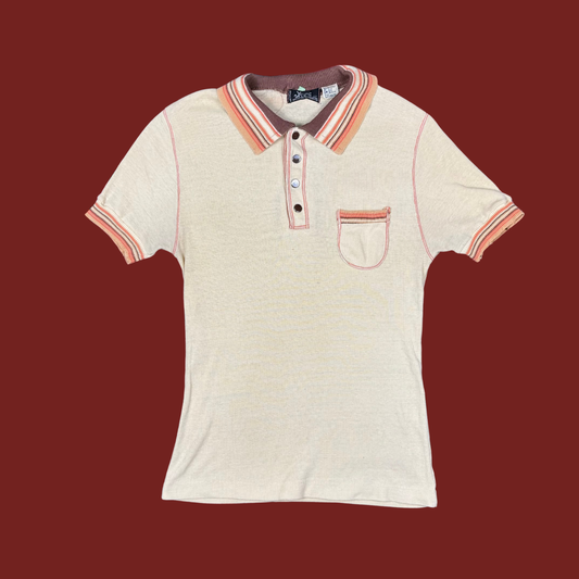 (M) 70s/80s Orange/Brown Striped Polo