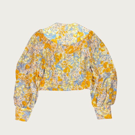 (M/L) 60s/70s Orange Floral Sheer Cropped Blouse