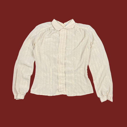 (M) 70s/80s Cream Striped Blouse