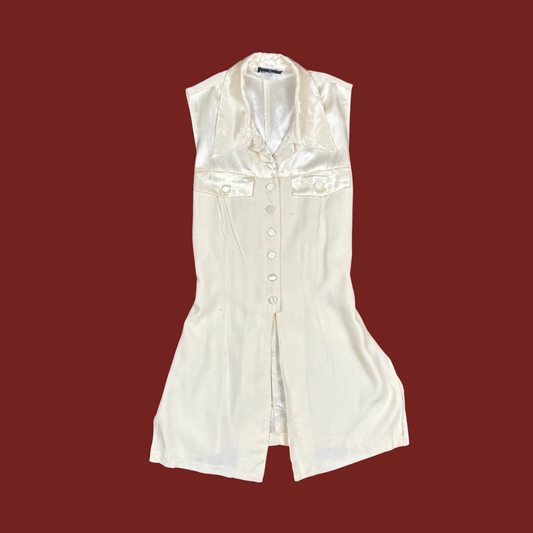 (S/M) 90s/Y2K Cream Satin Button Up Sleeveless Blouse
