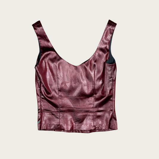 (S) 90s Cache Burgundy Floral Bustier Top
