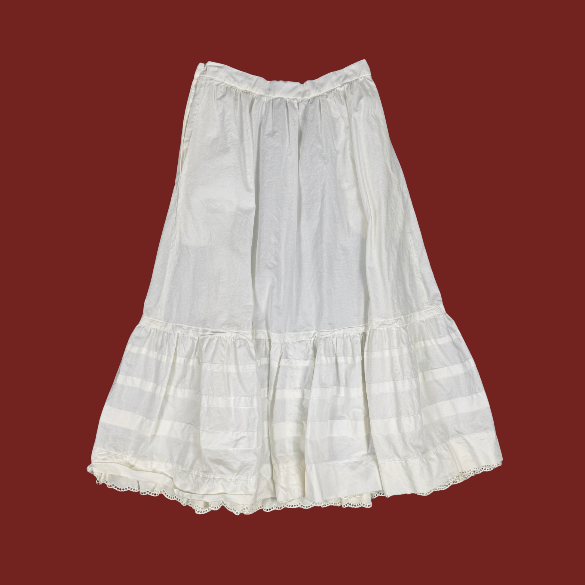 (24") 80s/90s White Eyelet Trim Midi Skirt