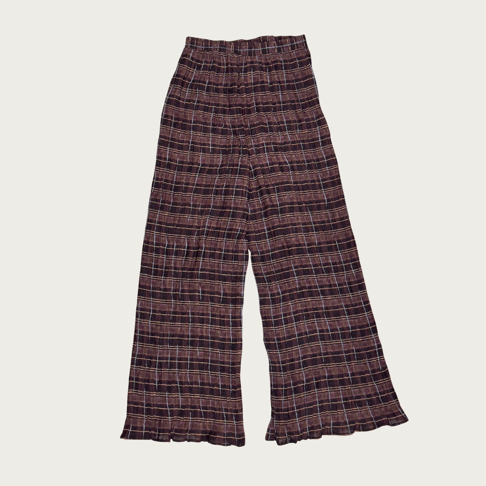 (S) 90s/Y2K Sheer Plaid Wide Leg Crinkle Pants