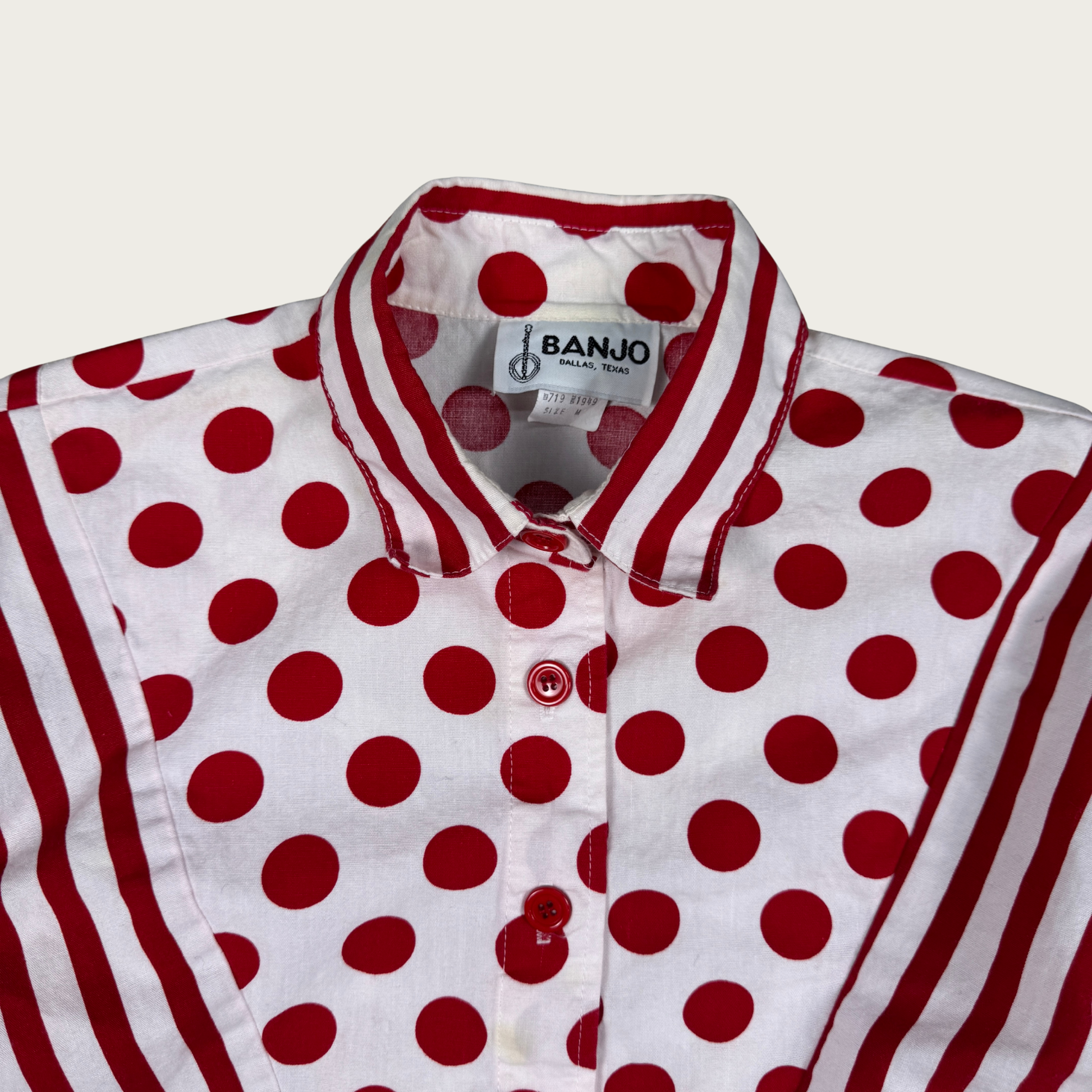 (M) 80s Red/White Polka Dot Striped Cropped Shirt
