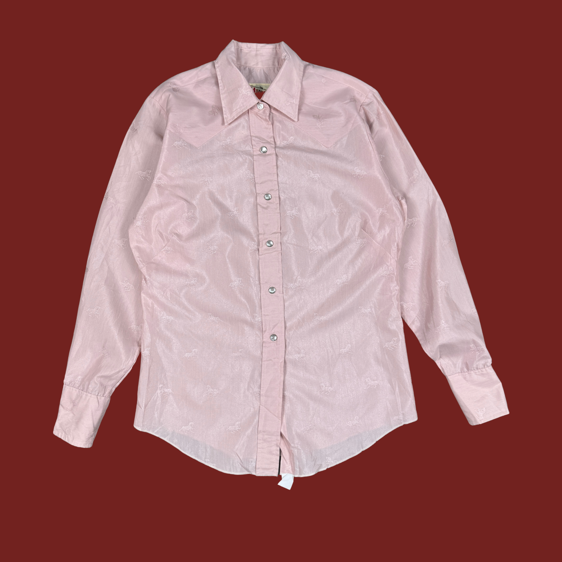 (M/L) 70s/80s H Bar C Pink Horse Print Western Shirt