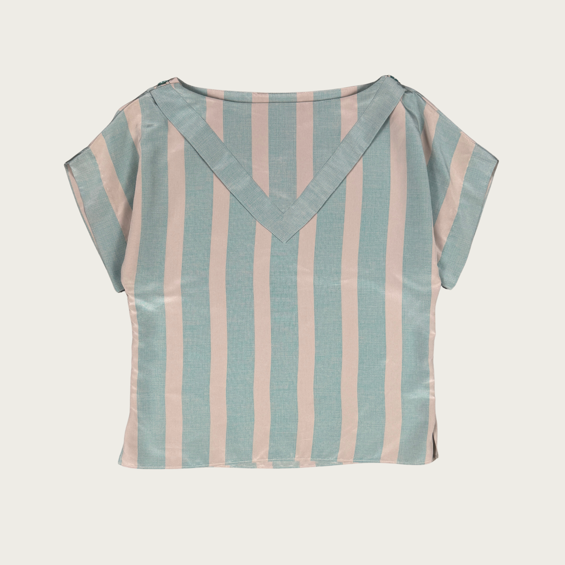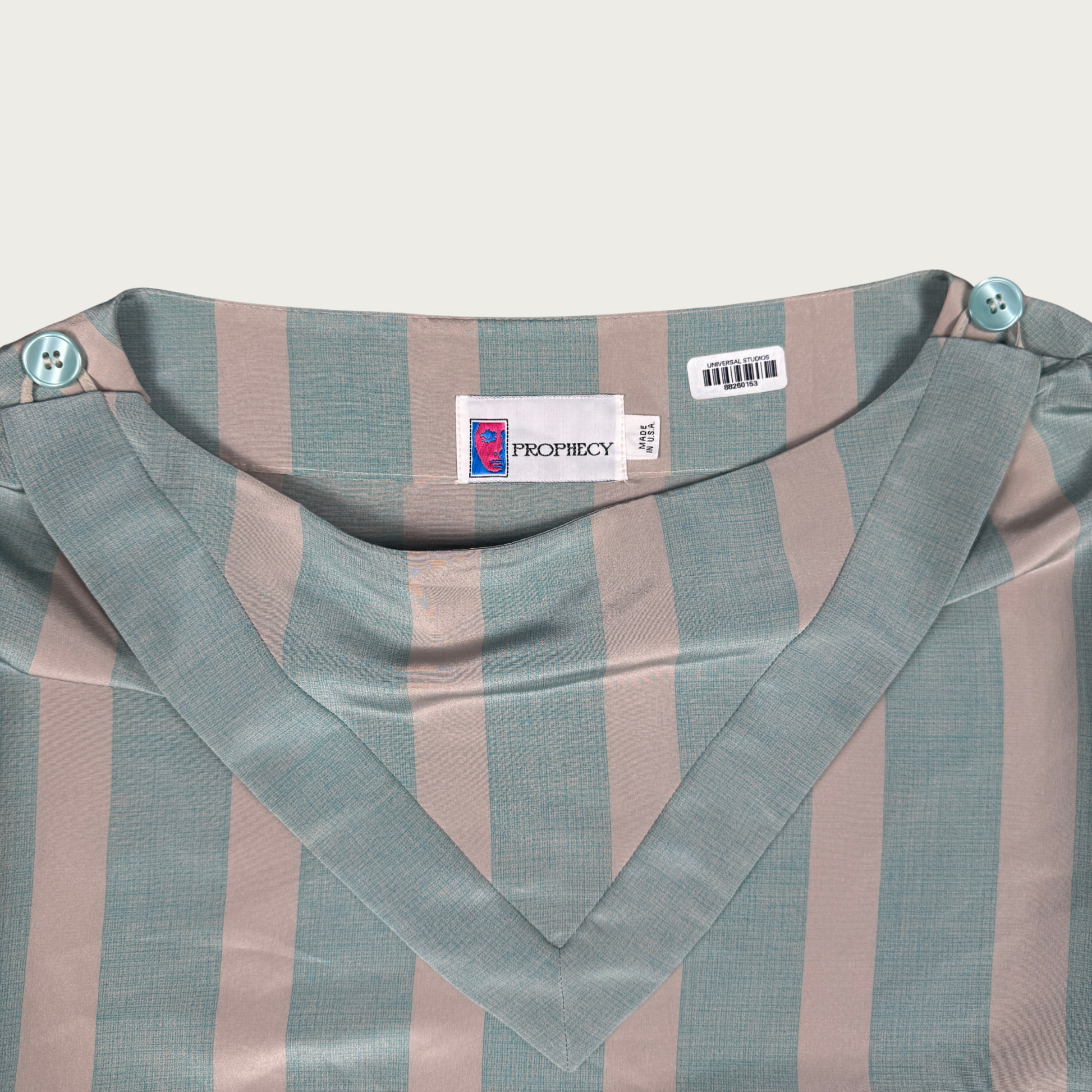 (M) 80s Blue/Gray Striped Sailor Style Blouse