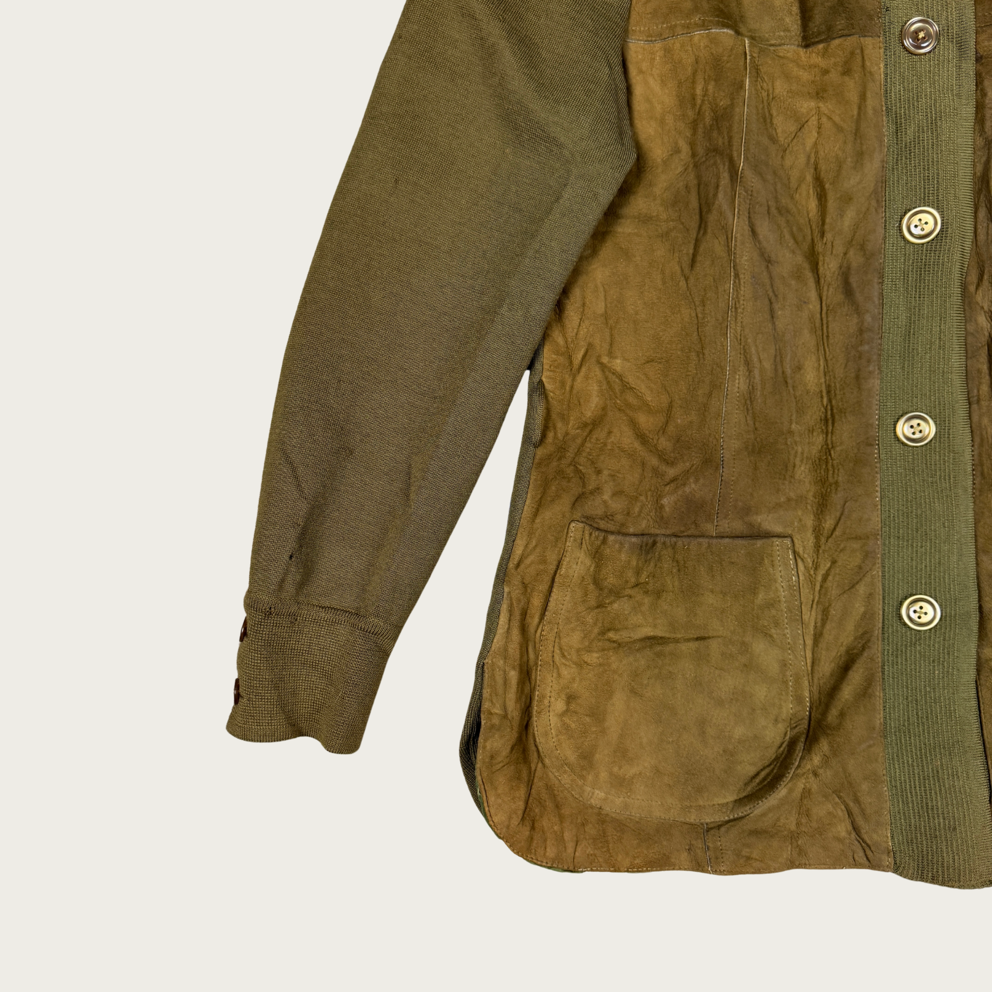 (M) 70s Khaki Suede Wool Shirt Jacket