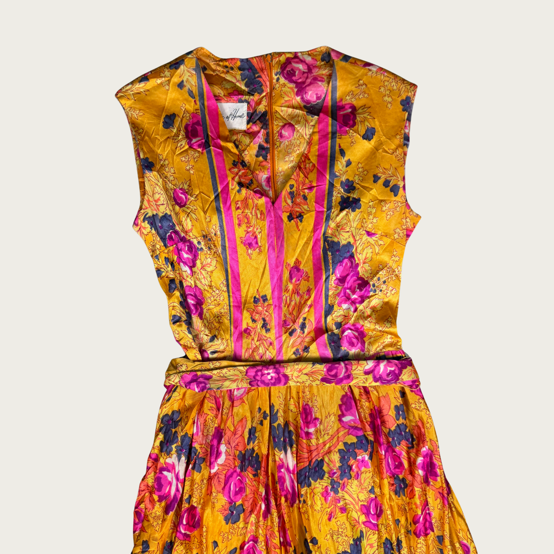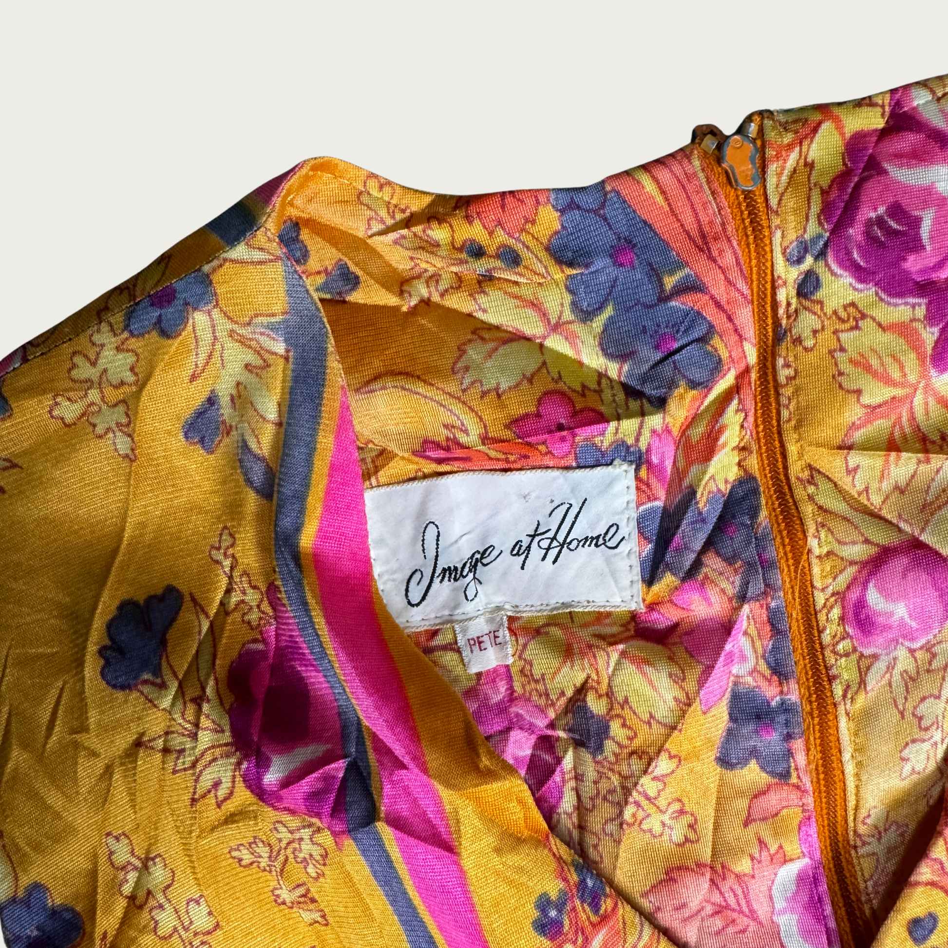 (S) 60s/70s Orange Floral Bell Bottom Jumpsuit
