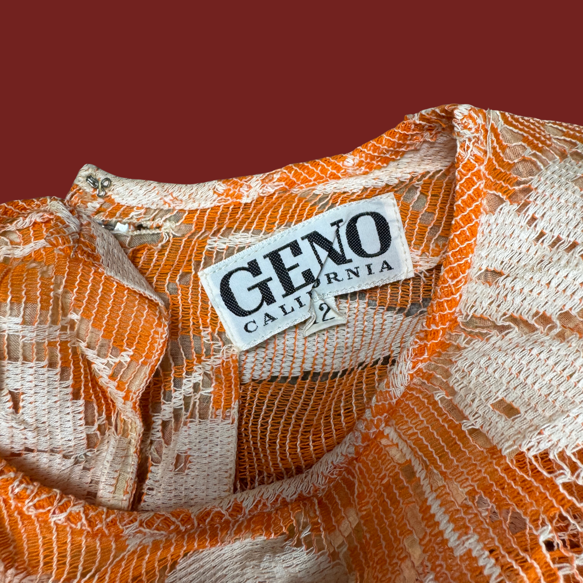 (M) 70s Orange/White Crop Top and Bell Bottom Set