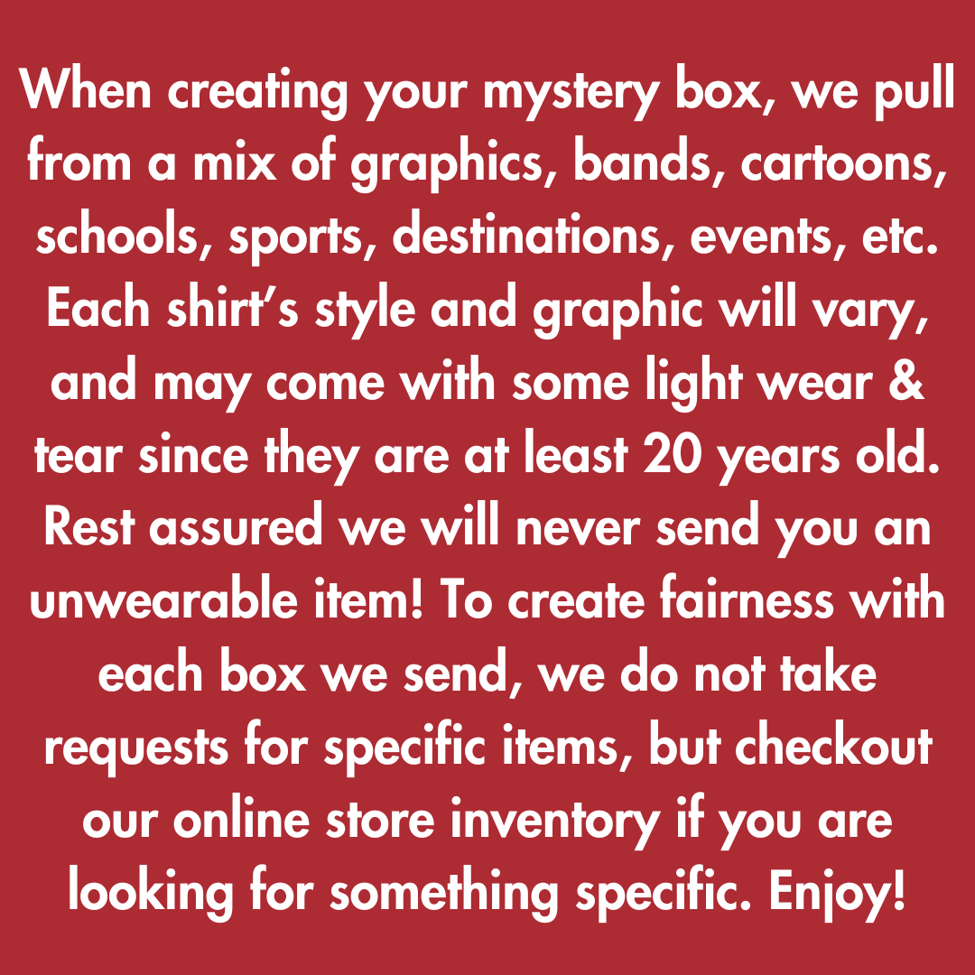 10 (TEN) hand-picked, true vintage tees pulled randomly from our selection of vintage stock. Make sure to specify which size range you'd like to receive. All Sales Final - No returns or exchanges.