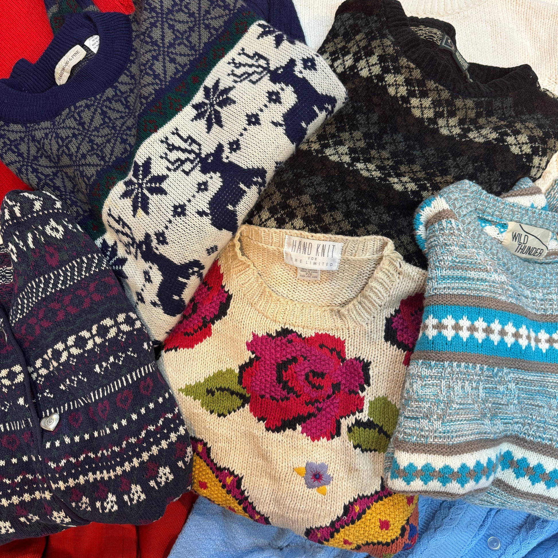 Get ready for the season with our Wholesale Sweater Bundle! Receive 25 assorted sweaters for just $250. Perfect for vintage stores, boutiques, or resellers looking to stock up on knits, pullovers, oversized fits, and retro designs. This mixed grade offers a variety of styles, colors, and patterns to keep your customers cozy and stylish all year round.